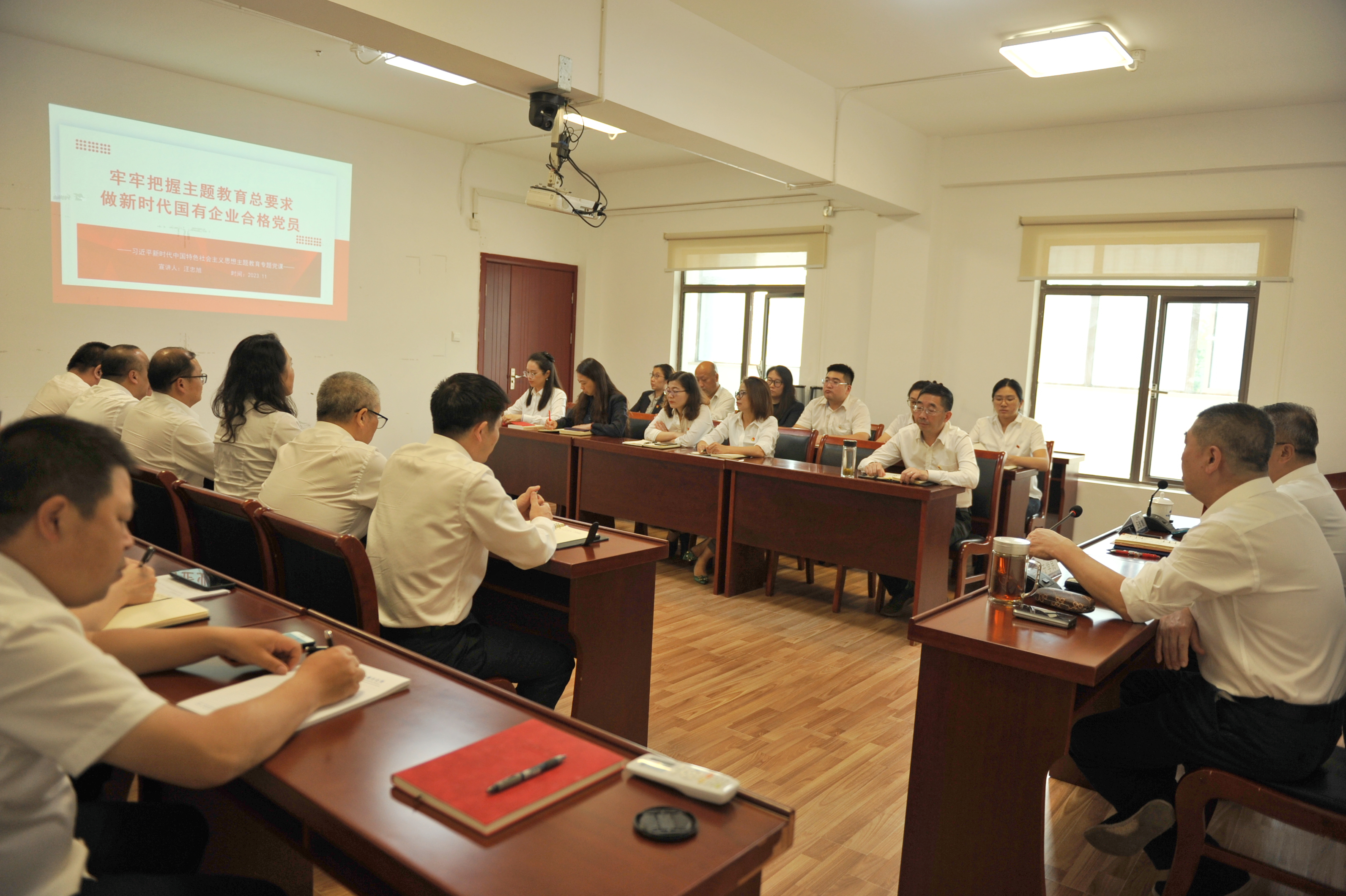 课上,汪忠旭以“牢牢把握主题教育总要求,做新时代国有企业合格党员”为题,围绕国有企业党员干部如何把握此次主题教育学习契机,切实增强思想自觉和行动自觉,坚持用党的创新理论武装自我,不断把学习贯彻习近平新时代中国特色社会主义思想引向深入,在新时代新征程中奋发有为、建功立业展开讲述。汪忠旭强调,扎实抓好主题教育,就是要坚持学思用贯通、知信行统一,通过开展专题集中学习启迪智慧,汲取力量,增强本领,不断提高高效工作的能力。