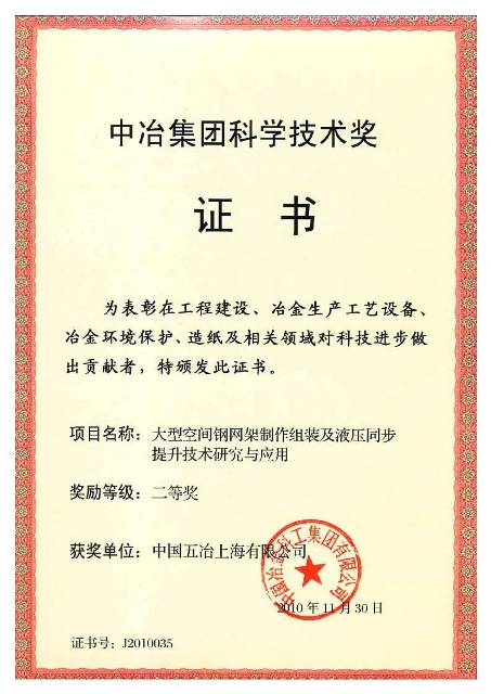 2009年通过中冶集团鉴定,达到国际先进水平。